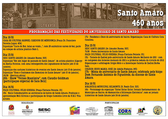 .Integrando e fechando a programação dos 460 anos de Santo Amaro, a Biblioteca Belmonte oferece uma mostra inédita: exemplares raríssimos de jornais que circularam em Santo Amaro desde o final do século XIX e até os atuais.